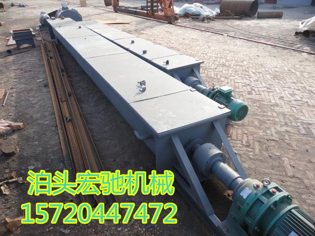 水冷式螺旋輸送機(jī)它包括筒體、帶螺旋板的轉(zhuǎn)軸、軸承和驅(qū)動裝置,筒體外面有外冷卻水套,轉(zhuǎn)軸兩端為空管。螺旋板的空腔與轉(zhuǎn)軸兩端的空管連通,
